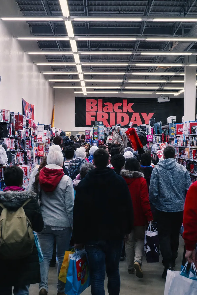Lojas lotadas no dia da Black Friday. O frenesi ficou no passado |  Foto: imagem gerada por IA
