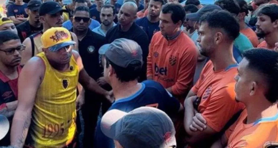 Jogadores e o técnico Daniel Paulista foram intmidados e ameaçados pelo homem conhecido por Henrique da Torcida Jovem do Sport |  Foto: - Reprodução/redes sociais