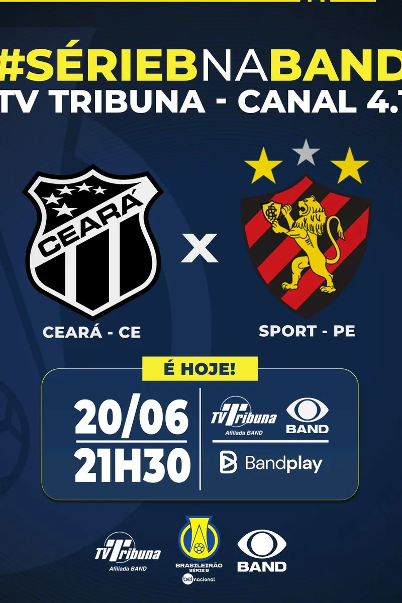 TV Tribuna/Band vai transmitir Ceará x Sport nesta quinta-feira