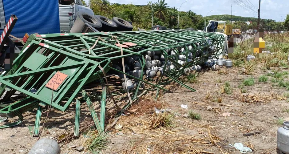 Parte da carga de um caminhão que transportava gás de cozinha foi saqueada por populares na manhã desta segunda-feira, no Km 73,5 da BR-101. O sinistro foi registrado por volta das 10h, nas proximidades dos Milagres, no bairro do Ibura,  no Recife, após o motorista perder o controle do veículo e tombar na rodovia.