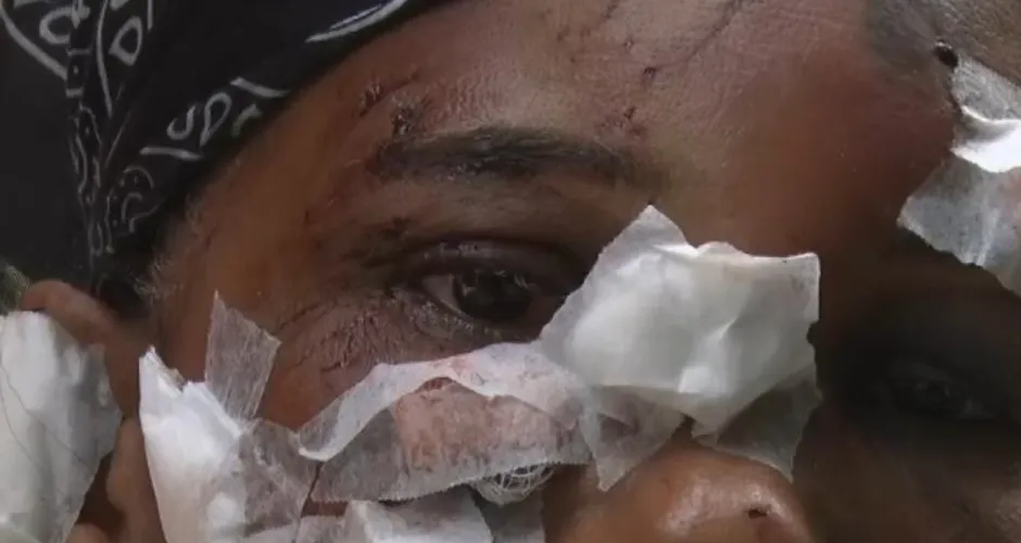 Sem querer se identificar e com o rosto bastante machucado, a mulher disse que o homem tem distúrbios mentais e, por isso, surta de vez em quando.