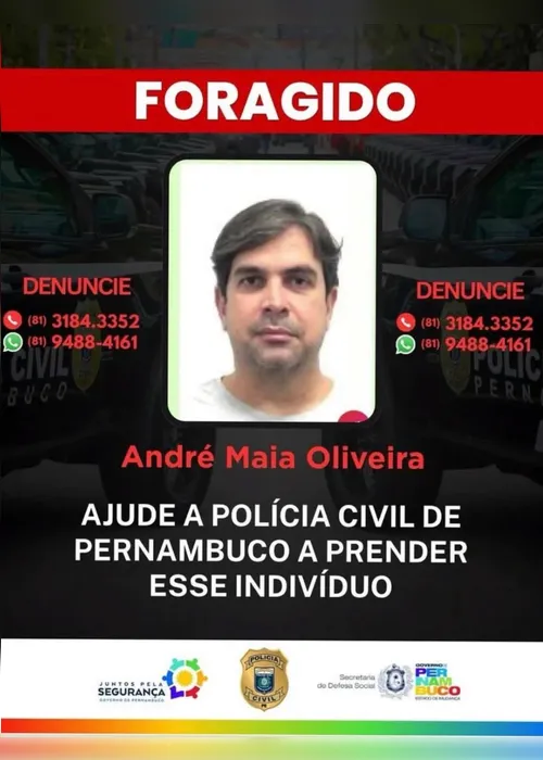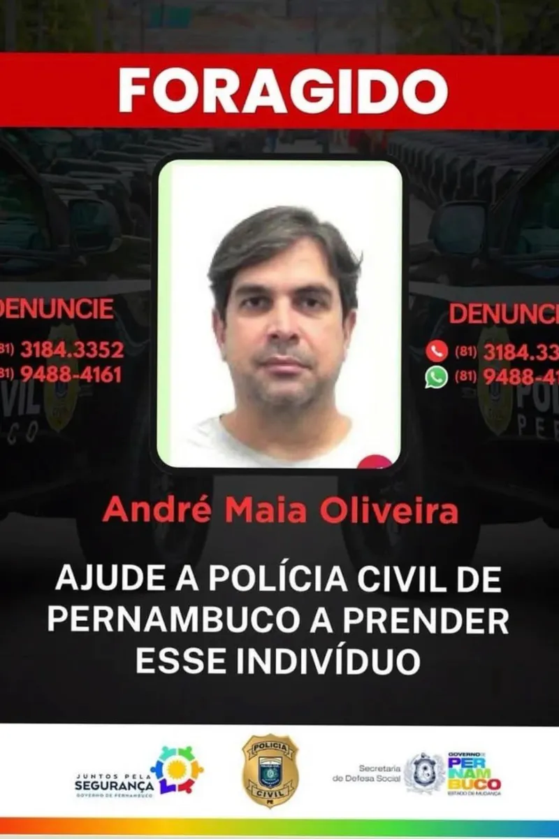 André Maia Oliveira, de 47 anos, empresário que invadiu o prédio de sua ex-companheira na manhã desta quarta-feira (18) e efetuou ao menos 20 disparos de arma de fogo contra a porta do apartamento da vítima está foragido. A Polícia Civil está divulgando nas redes sociais e nas principais delegacias do Estado a imagem da foto dele como procurado.