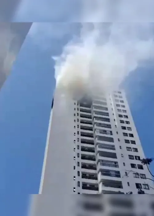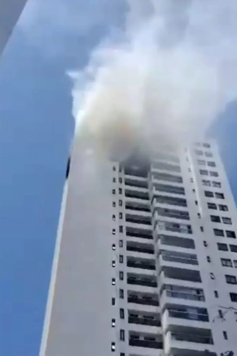 Em imagens que circulam nas redes sociais, é possível ver muita fumaça saindo de um apartamento em um dos andares mais elevados de um prédio.