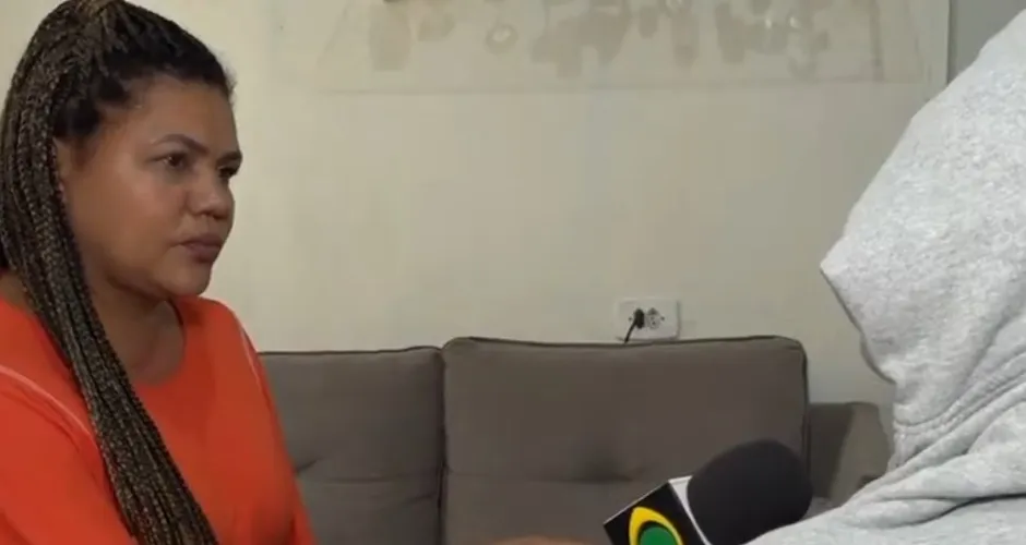 A repórter Luciana Queiroz, da TV Tribuna, falou com a mãe da vítima |  Foto: Reprodução/TV Tribuna
