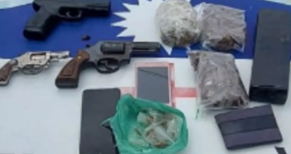 A polícia também informou que recolheu dois revólveres e uma réplica de pistola, além de munições deflagradas e pinadas. Também foram apreendidos cerca de 800 gramas de maconha, porções embaladas da erva, celulares e uma quantia de R$ 220 em dinheiro.