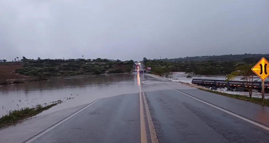 Fortes chuvas causaram a interdição total da rodovia na madrugada desta sexta-feira (27); a via já foi liberada após o nível da água baixar
