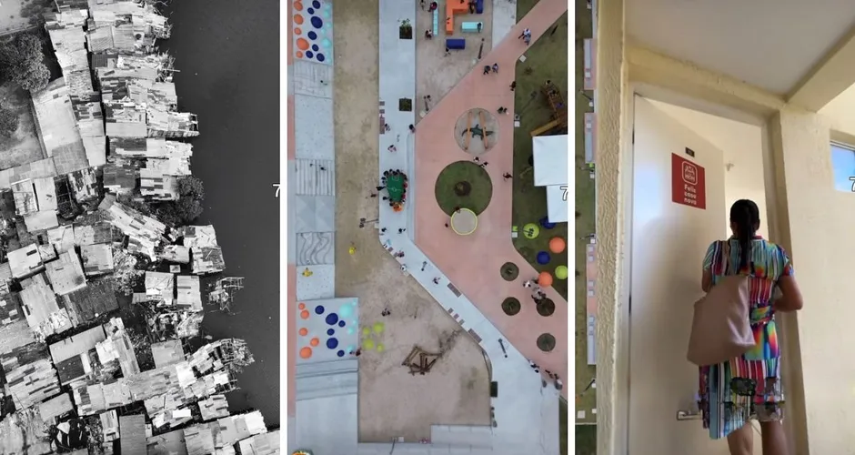 Antiga área de palafitas é transformada em parque no coração do Recife. A imagem é do antes e depois |  Foto: Reprodução das redes sociais do prefeito João Campos