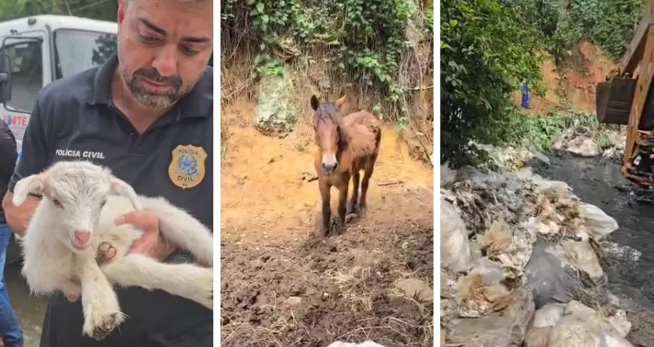“Com o apoio das equipes da Prefeitura, o portão foi aberto para acesso das equipes, que encontraram quatro bovídeos, entre cabras e cabritos, 38 aves, entre galos, galinhas e pintos, um porquinho da Índia, um cavalo e três cachorros. Todos em condições inadequadas e caracterizando maus-tratos”, detalhou o delegado Leandro Piquet, responsável pelo Núcleo de Proteção Animal da Delegacia Especializada de Proteção ao Meio Ambiente (DEPMA).