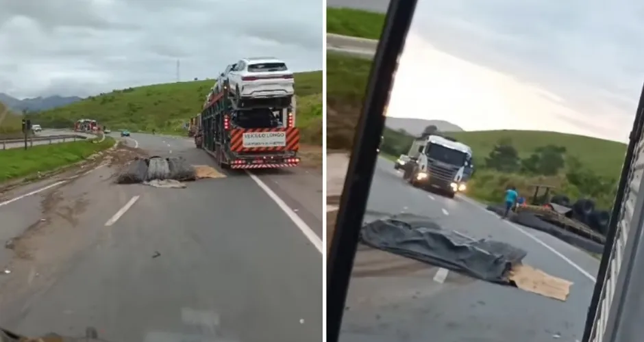 Caminhoneiro morre após carreta de vergalhões tombar na BR 101 em Anchieta
