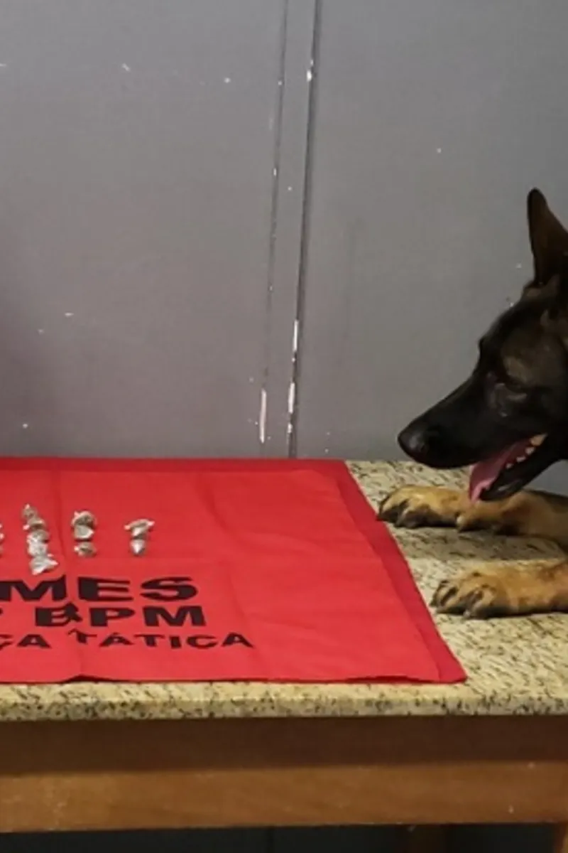 Neste sábado (14), o animal mostrou que também é craque no que faz e ajudou os militares a encontrarem 17 buchas de maconha que estavam enterradas em um terreno baldio, no bairro Valão.