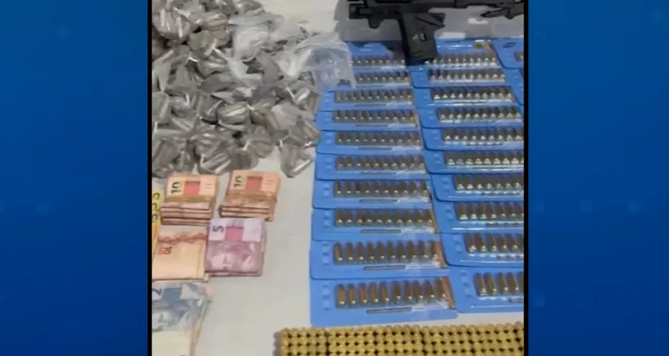 Durante as buscas na residência, os policiais encontraram sete tabletes de pasta base de cocaína, cada um com cerca de um quilo, além de 1.023 munições de calibre 9mm, todas intactas e embaladas. Também foram localizados 2.812 pinos de cocaína, escondidos no forro do banheiro do imóvel.