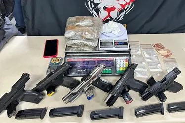 Os agentes, então, montaram um cerco e detiveram os suspeitos. Com eles, foram apreendidos 865g de skunk, também conhecido como supermaconha; 84g de cocaína pura; 175g de maconha; três balanças de precisão; R$10 em espécie; um aparelho celular; duas pistolas calibre 9mm; duas pistolas de marca Beretta; dez carregadores e uma pistola de marca Taurus.