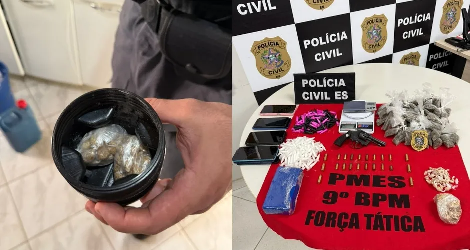 A ação da Polícia Civil, integrada com a Força Tática e o K9 do 9º Batalhão da Polícia Militar, localizou, com o auxílio de cão farejador, 46 pedras de crack dentro de uma garrafa de café rosqueada.