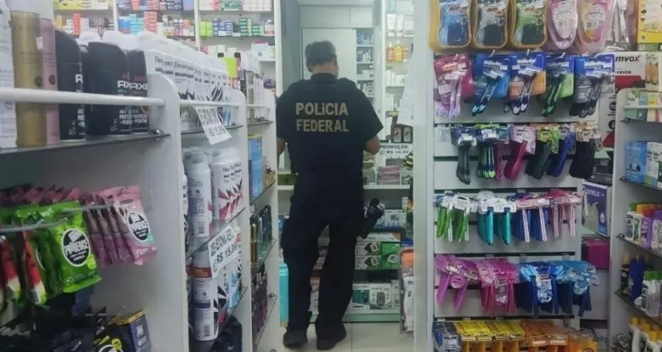 Policial Federal durante o cumprimento de mandado em uma farmácia do Programa Farmácia Popular |  Foto: Divulgação/Polícia Federal