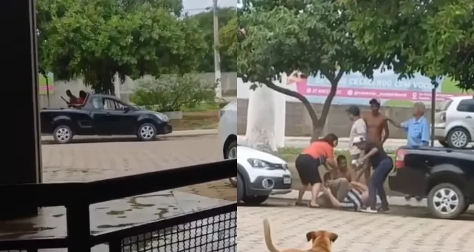 Um dos suspeitos foi contido por populares ao tentar atingir a vítima com uma faca |  Foto: Reprodução/Redes sociais