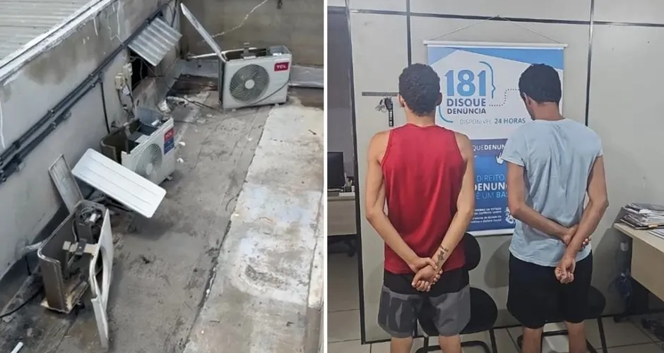 Durante as ações, os suspeitos retiraram componentes dos equipamentos, como colmeias de condensadores e cobre, comprometendo o sistema de climatização do local