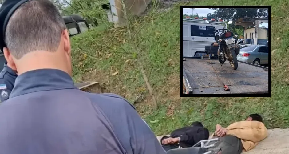 Neste momento, a dupla foi abordada por um policial. Durante a revista pessoal e verificação de antecedentes, agentes encontraram R$ 120 em espécie com o garupa de 17 anos, mas nada de ilícito foi localizado. No entanto, ao consultar os dados do veículo, os policiais constataram que o número do chassi pertencia a outra motocicleta que havia sido furtada no dia 28 de setembro, na Serra — o que fez com que eles fossem detidos.