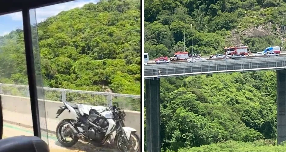 Com o impacto da batida, o motociclista foi lançado e caiu na ciclovia da ponte e morreu no local.