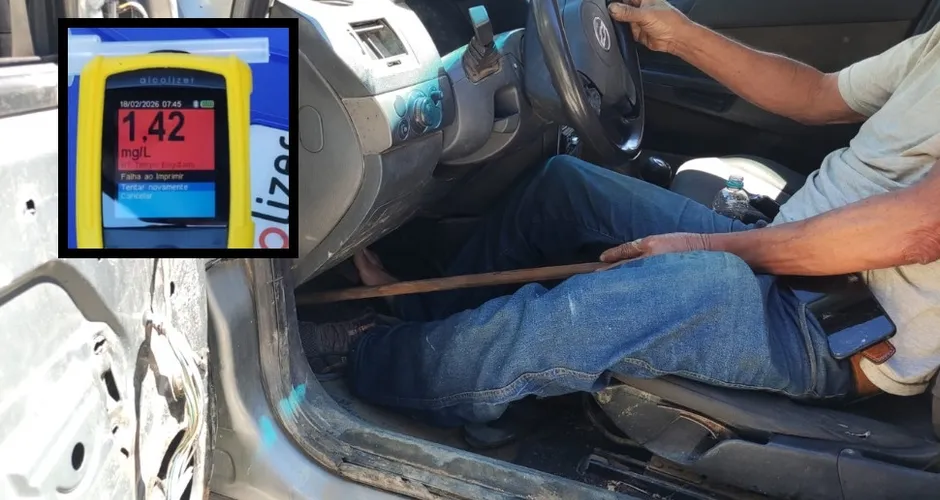 "Durante a abordagem, verificou-se ainda que o condutor é pessoa com deficiência (PCD), possuindo uma perna mecânica, e conduzia um veículo com câmbio manual. Foi constatado que ele realizava o acionamento da embreagem utilizando um cabo de vassoura, adaptação improvisada que compromete significativamente a segurança veicular e amplia os riscos à condução, especialmente associada ao consumo de álcool", explicou a corporação.