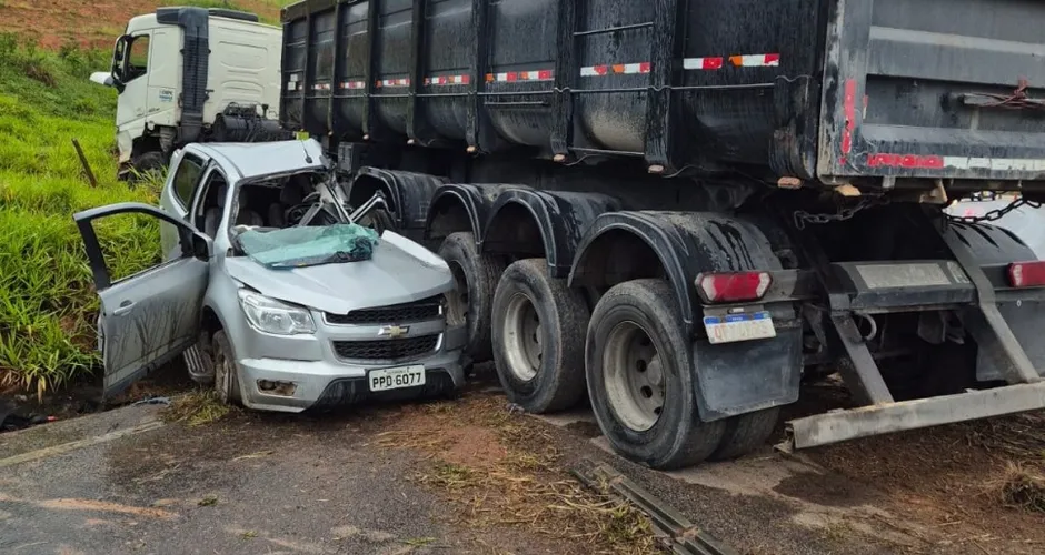 O condutor da caminhonete ficou preso às ferragens após o impacto e morreu ainda no local, antes da chegada do socorro.