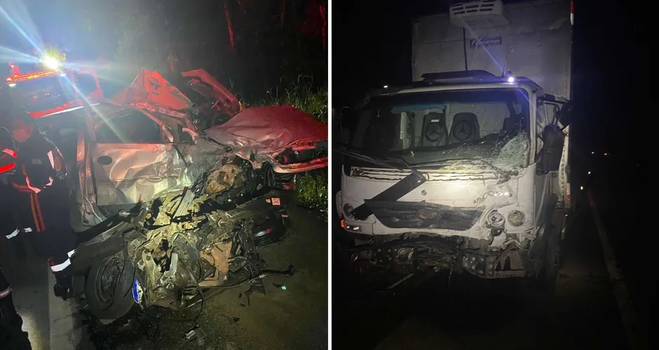 Um homem de 48 anos morreu após o veículo que dirigia colidir com um caminhão no km 55 da BR-262, em Marechal Floriano, região Serrana do Estado, na madrugada desta segunda-feira (8). De acordo com informações do Corpo de Bombeiros, com o impacto, o carro de passeio ficou parcialmente destruído e o condutor acabou preso às ferragens, sendo encontrado já sem vida pela equipe de resgate.