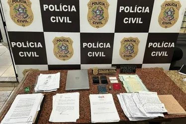 Materiais apreendidos pela Polícia Civil na "Operação Falsária" contra falsa advogada em Cachoeiro de Itapemirim