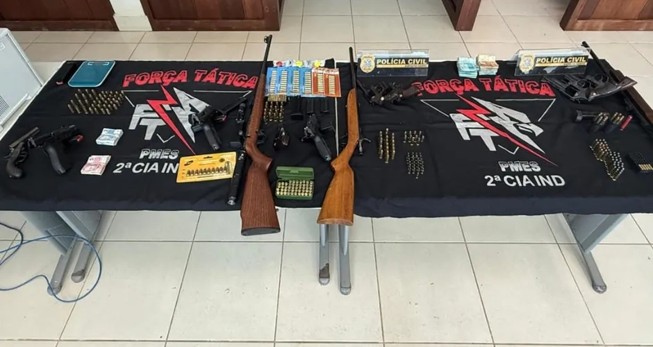 Uma operação conjunta das Polícias Civil e Militar apreendeu 12 armas de fogo, 379 munições e resultou na prisão de quatro pessoas na última quinta-feira (22), no município de Afonso Cláudio, na Região Serrana do Espírito Santo.