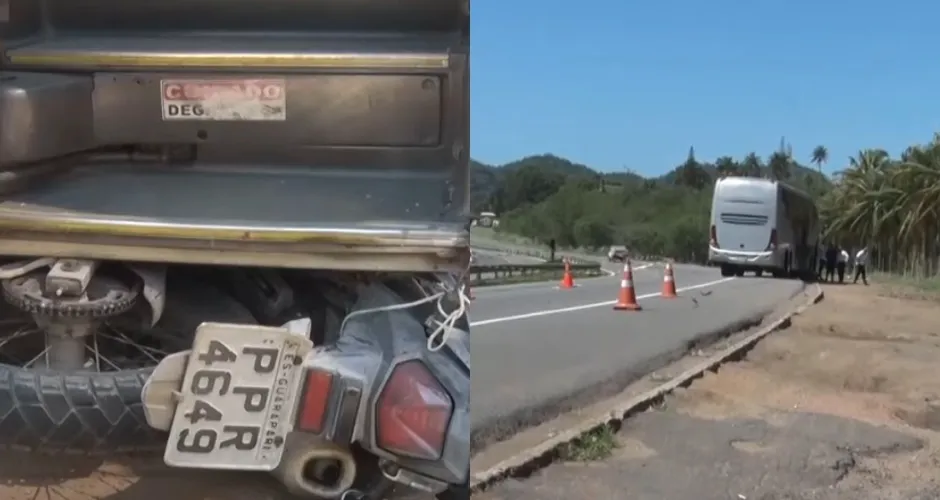 O ônibus, que seguia de Belo Horizonte em direção à Vitória, colidiu com o motociclista, que ficou preso entre as ferragens e o pneu na paste frontal do veículo, sendo arrastado por diversos metros no asfalto.