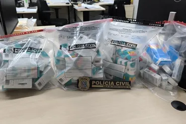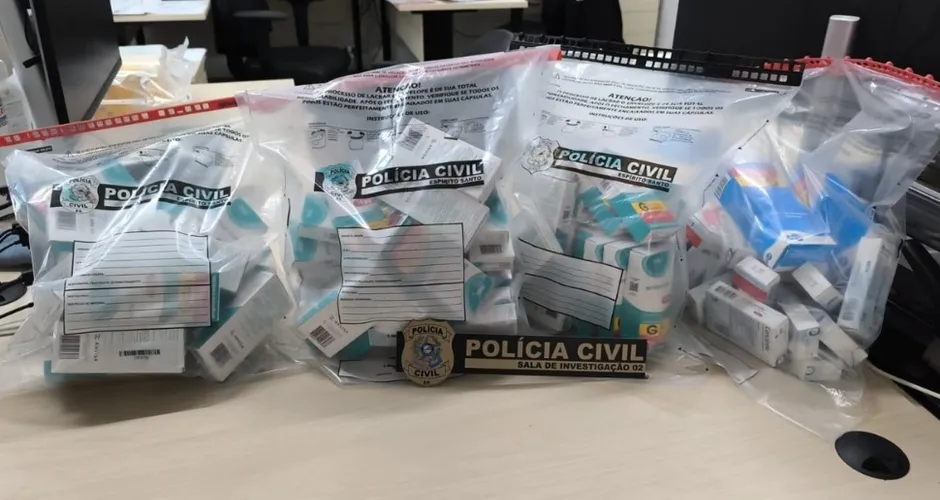 A polícia apreendeu mochilas, utensílios domésticos, produtos diversos e, principalmente, uma grande quantidade de medicamentos, sendo muitos deles de alto valor comercial e com origem do mesmo laboratório, o que indica a possibilidade de furto ou roubo em larga escala na cadeia de fabricação ou distribuição.