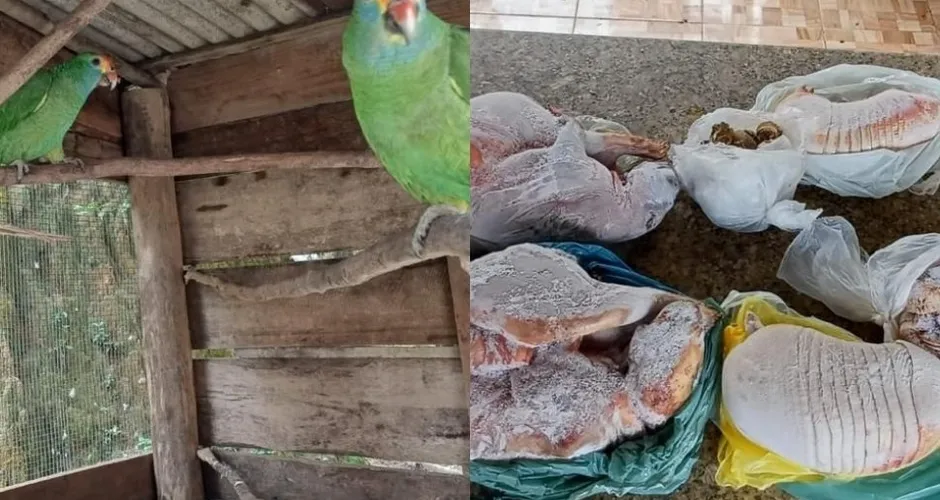 A operação ocorreu na localidade de São João do Moacir. No local, agentes localizaram dois papagaios Chauá, espécie silvestre nativa da Mata Atlântica, mantidos em um viveiro sem licença dos órgãos ambientais — além de 31 quilos de carnes de animais silvestres, entre elas duas pacas inteiras, três tatus parcialmente inteiros e outras partes de animais.