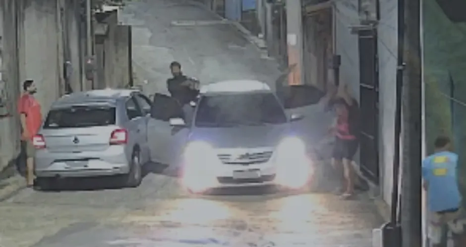 Uma câmera de videomonitoramento registrou o momento em que três suspeitos desembarcam de um carro e efetuam diversos disparos contra as pessoas que estavam na rua. Nas imagens, também é possível ver o condutor do veículo realizando disparos da parte de dentro do automóvel.