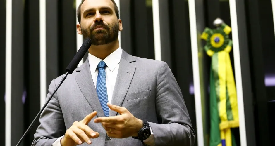Eduardo Bolsonaro está morando nos Estados Unidos desde março do ano passado. Em dezembro, a Mesa Diretora da Câmara dos Deputados cassou o seu mandato. A cassação ocorreu porque o parlamentar deixou de comparecer a, pelo menos, um terço das sessões deliberativas da Câmara na sessão legislativa.