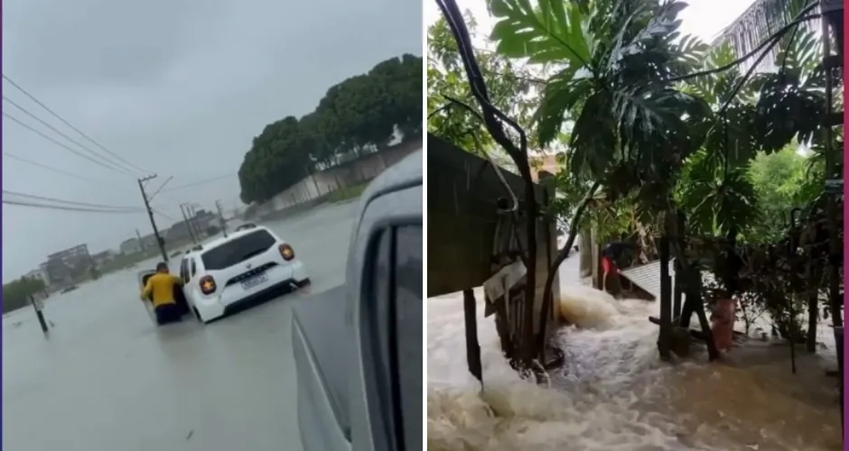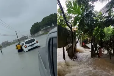 No bairro Aviso, imagens mostram ruas cheias d'água e moradores ilhados: