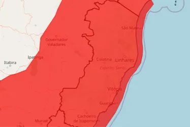 O Instituto Nacional de Metereologia (Inmet) emitiu um alerta vermelho, que indica grande perigo, para acumulados de chuva em todo o Espírito Santo. O aviso é válido entre 9h45 desta terça-feira (23) e 23h59 de sexta (27).