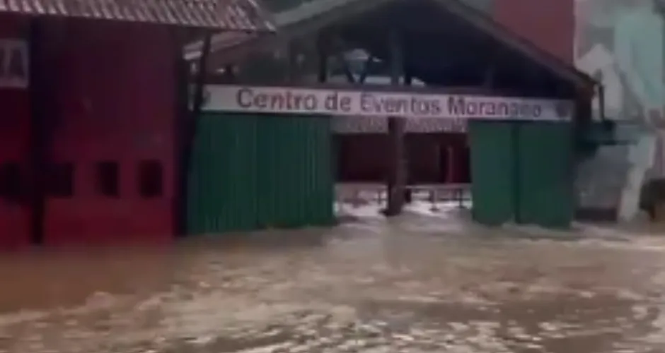 Imagens que circulam nas redes sociais mostram grande volume de água descendo pelas ruas e avançando sobre trechos da comunidade. Em alguns pontos, a força da enxurrada dificultou a passagem de veículos e pedestres.