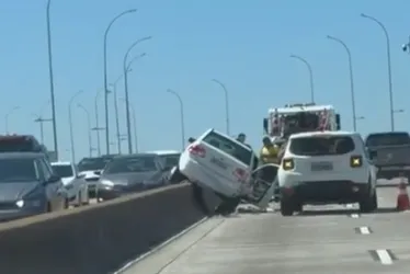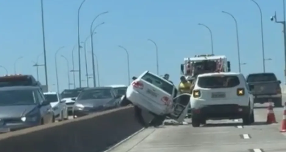 Veículo colidiu com a mureta que divide os dois sentidos na Terceira Ponte