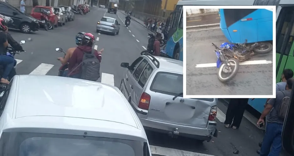 Um acidente envolvendo um ônibus do Sistema Transcol e uma motocicleta causou lentidão no trânsito da região do Centro de Vitória na manhã desta terça-feira (29). Segundo informações da Guarda Municipal de Vitória, duas pessoas foram socorridas após o acidente.