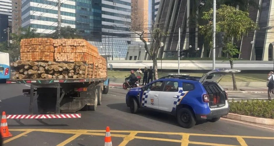Um caminhão interditou duas faixas da Avenida Nossa Senhora dos Navegantes e causou um longo congestionamento no trânsito da região da Enseada do Suá, em Vitória, na manhã desta quarta-feira (08). De acordo com informações de leitores do Tribuna Online, o veículo estava carregado com madeira e teria apresentado uma pane na altura do Palácio do Café.