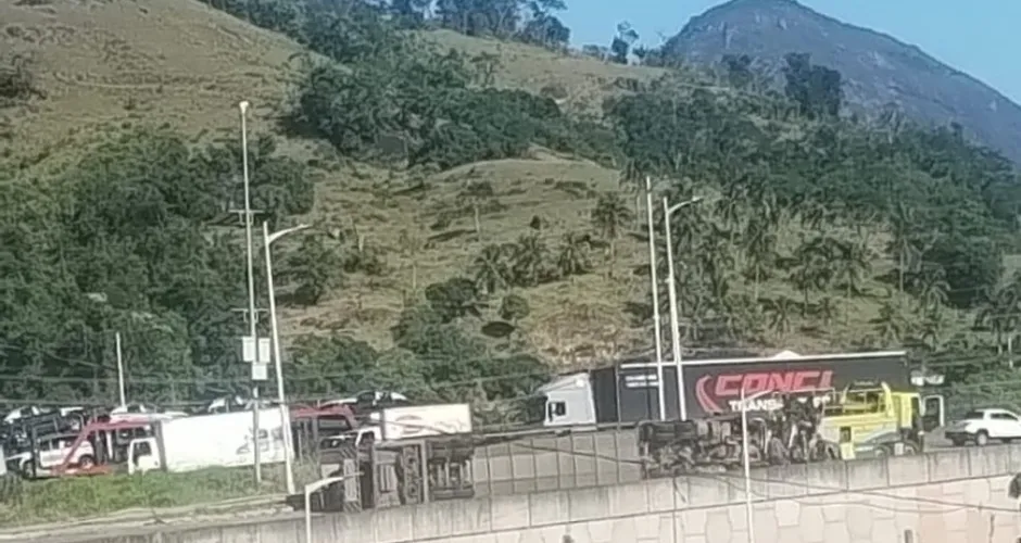 Uma carreta-cegonha carregada de veículos tombou na madrugada desta terça-feira (30) no quilômetro 296,2 da BR-101, em Cariacica, no viaduto próximo à Central de Abastecimento do Espírito Santo (Ceasa). De acordo com a Ecovias Capixaba, concessionária responsável pelo trecho, o condutor do veículo sofreu ferimentos de média gravidade e parte da via foi interditada.