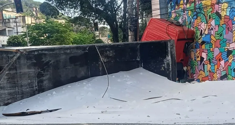 O primeiro acidente foi registrado ainda durante a madrugada, quando uma carreta tombou na Avenida Vitória, na altura da Curva do Saldanha, no sentido Jucutuquara. Com o impacto, a carga tombou e um poste de energia foi danificado. O veículo segue caído na via, que foi interditada para a retirada da carga.