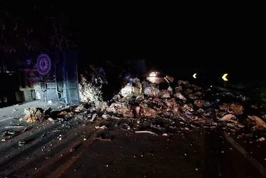 De acordo com informações da Polícia Rodoviária Federal (PRF), um caminhão carregado de sucata tombou na cabeceira de uma ponte, na altura do quilômetro 424. Não houve vítimas e, até o momento, não há previsão de liberação da pista.